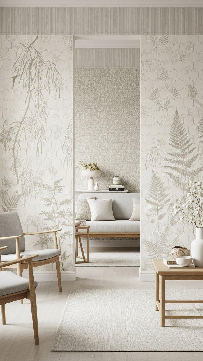 When you choose low-contrast wallpaper in neutral motifs, you’re layering subtle pattern without stealing focus—soft geometrics, faded botanicals, or tone-on-tone stripes add depth while keeping the room calm.