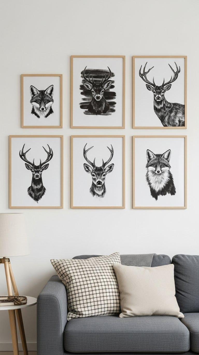 Wood-framed woodland animal prints give your wall an instantly curated, nature-forward look that feels both modern and homey.