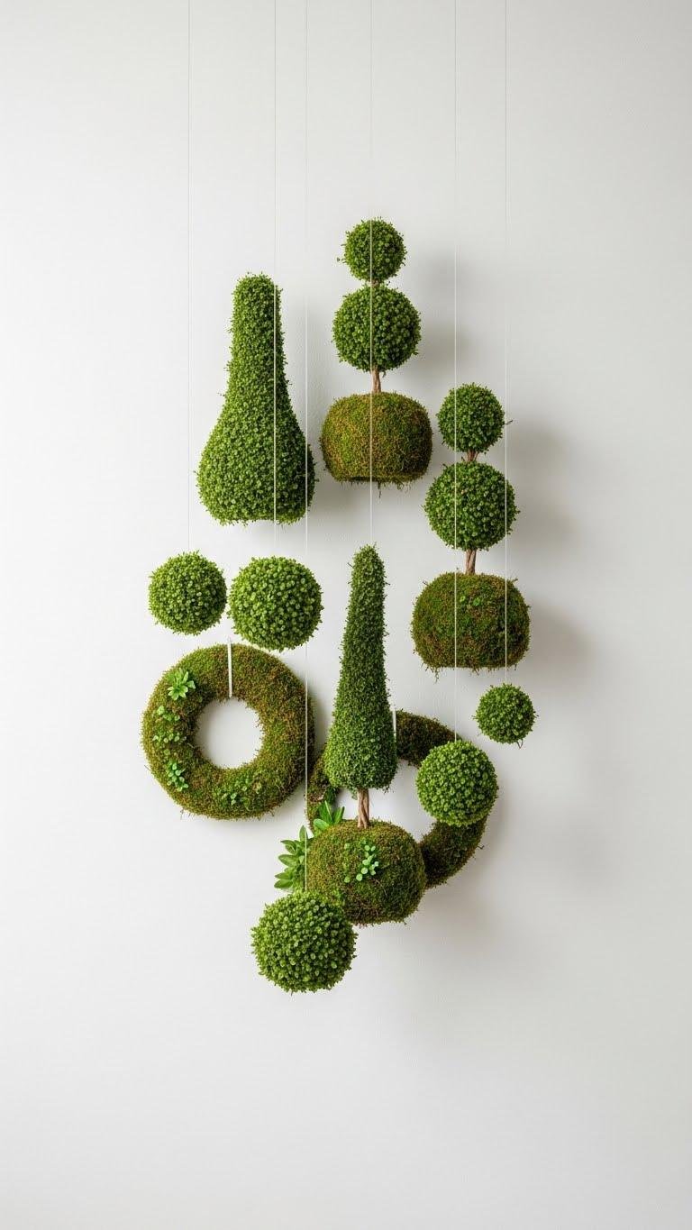 Bring a cluster of petite topiary pieces onto your wall to add structured greenery with a modern, sculptural vibe.