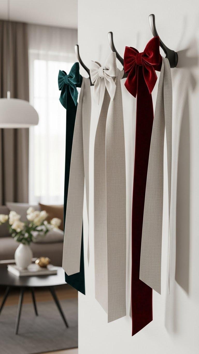 Softly tied with the kind of deliberate ease that feels both luxe and lived-in, linen ribbons and velvet bows turn simple wall hooks into style statements.