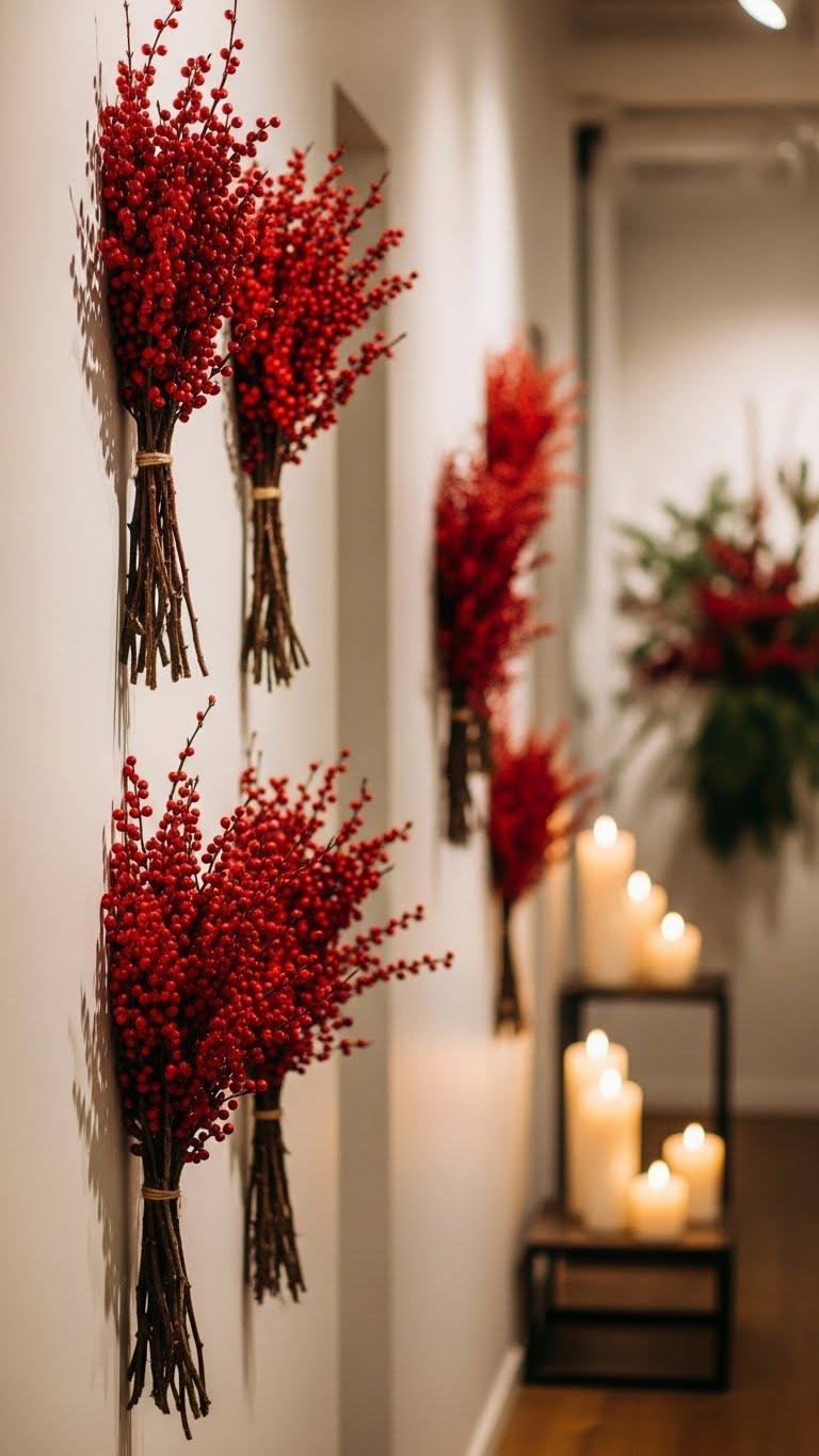 After the ease of linen ties and velvet bows, winterberry branch bundles add a crisp, natural edge to your wall styling.